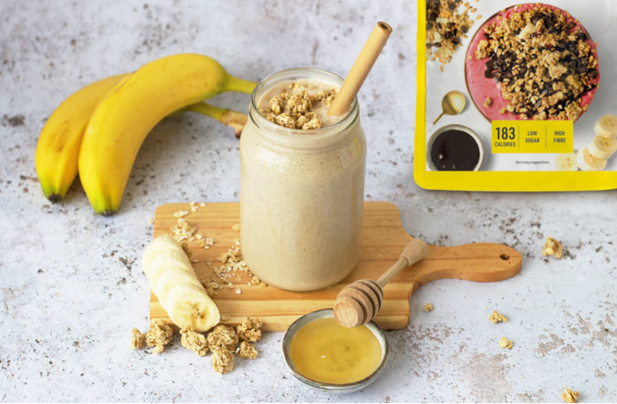 Fuel your day well with a tasty granola smoothie rich in natural sugars from banana and honey. Ideal for a sweet tooth!