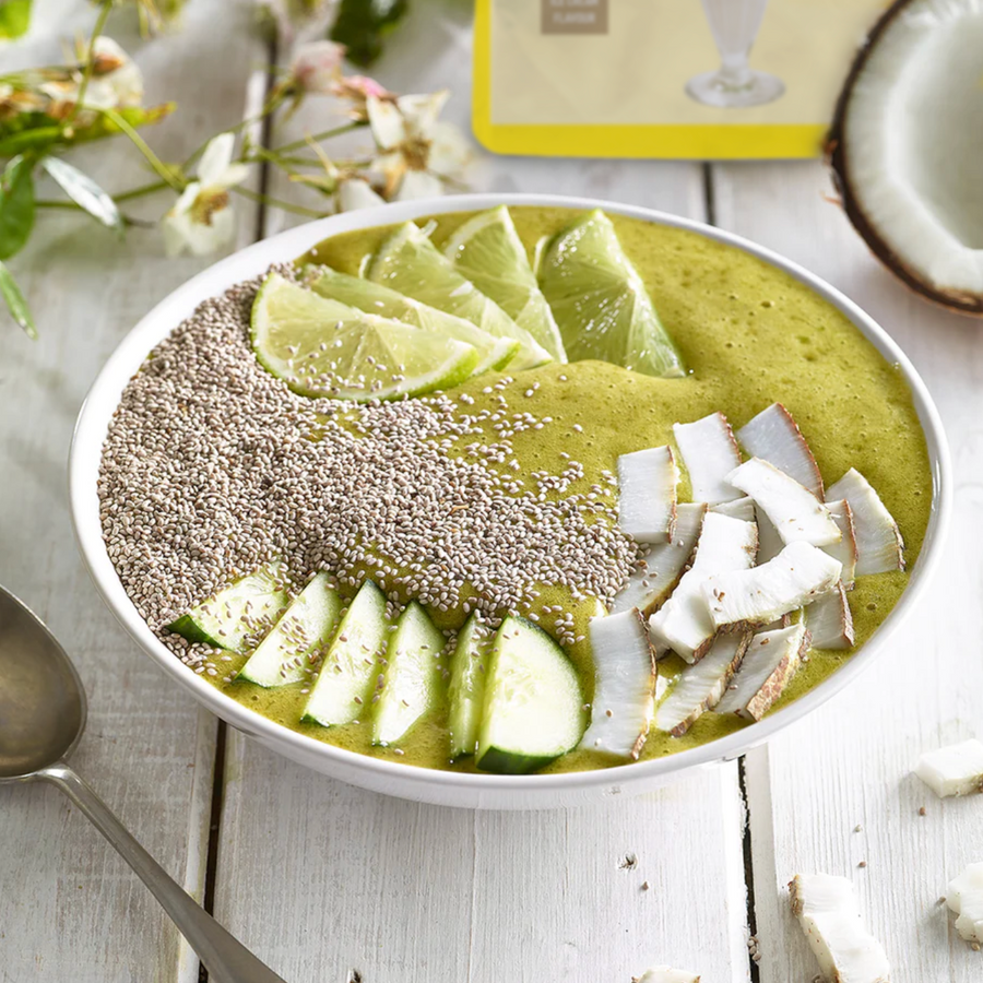 - Transfer to a bowl and top with shredded coconut and and chia seeds or any other topping of your choice